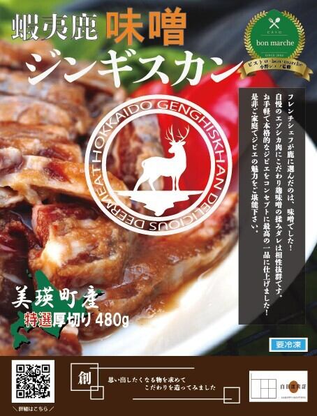原生地、美瑛で育った蝦夷鹿の絶品ジンギスカンをご紹介いたします。とろけるような肉質と濃厚な味わいが特徴です。厳選された厚切り肉が480gも詰まった贅沢な一品です。