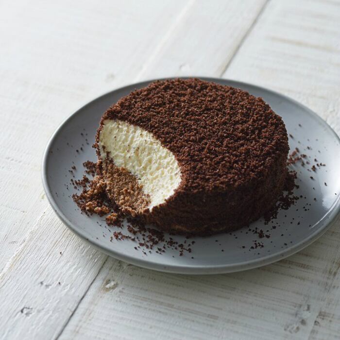 口の中でとろけるようななめらかなチーズケーキに、濃厚なチョコレートが絡み合い、贅沢な味わいを生み出します。一瞬で広がる、ふくよかな「ミルク感」。そして、落ちついた上品な甘さ。やわらかな口あたりのレアチーズケーキとしっかりとしたコクを感じるベイクドチーズケーキのコントラスト。